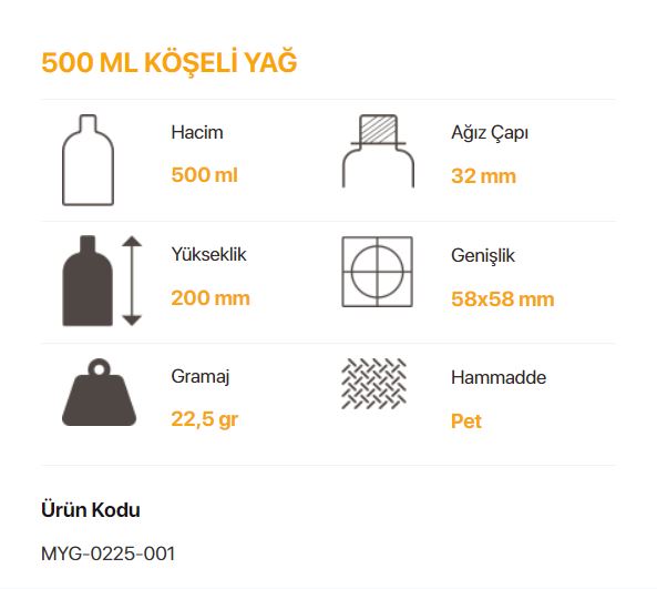 500 ml 22,5 gr Köşeli Yağ